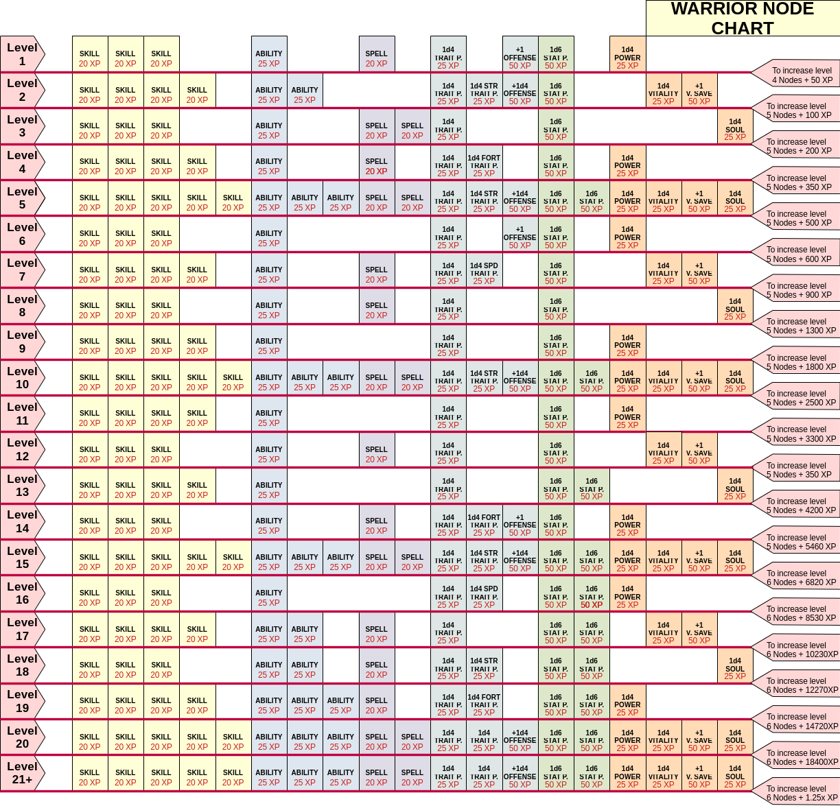• In order to progress to the next level you need to meet the required nodes and pay the progression XP cost.