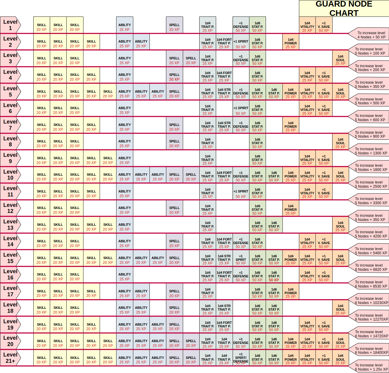 - In order to progress to the next level you need to meet the required nodes and pay the progression XP cost.