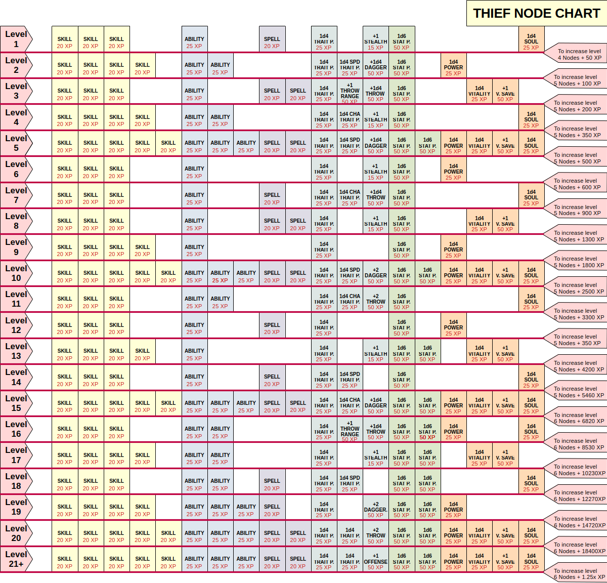 • In order to progress to the next level you need to meet the required nodes and pay the progression XP cost.