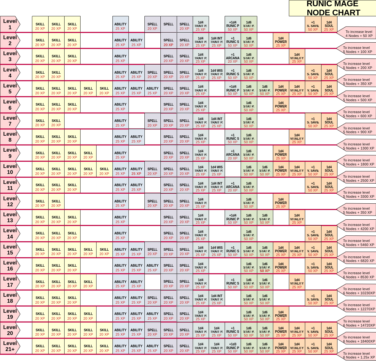Runic Mages progress following the Runic Mage Node Chart.