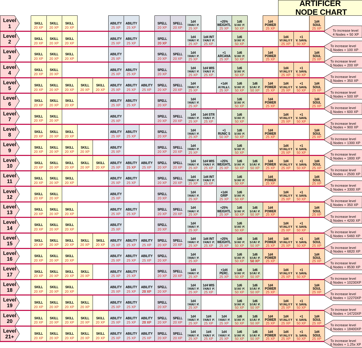 Artificers progress following the Artificer Node Chart.