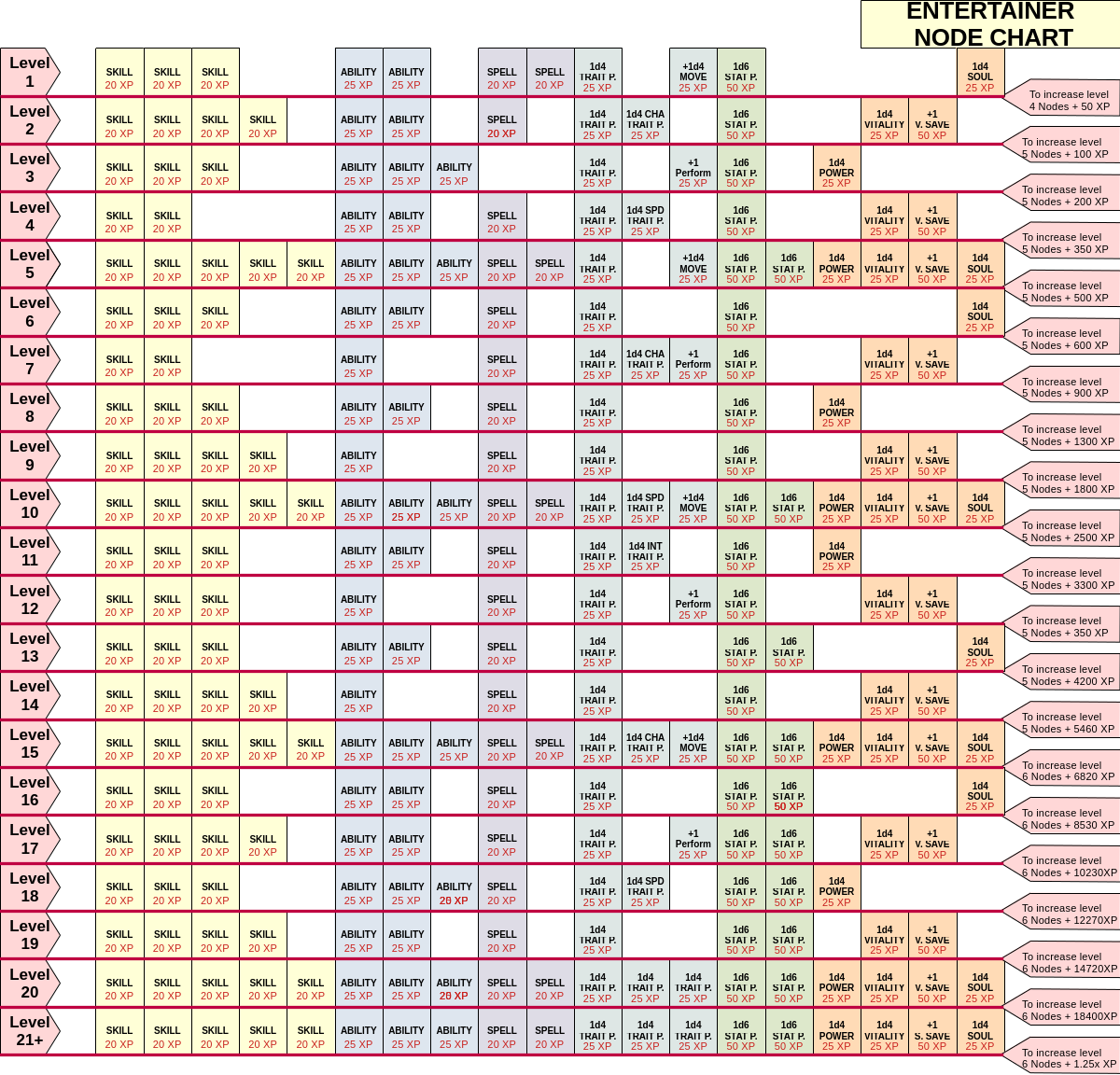 - In order to progress to the next level you need to meet the required nodes and pay the progression XP cost.